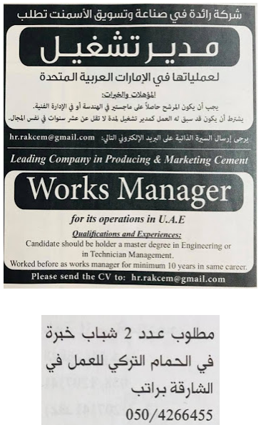 المصدر: وظائف شاغرة في الامارات.