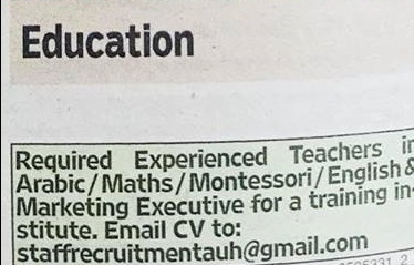 وظائف في مؤسسة تعليمية كبرى في دبي وابوظبي.