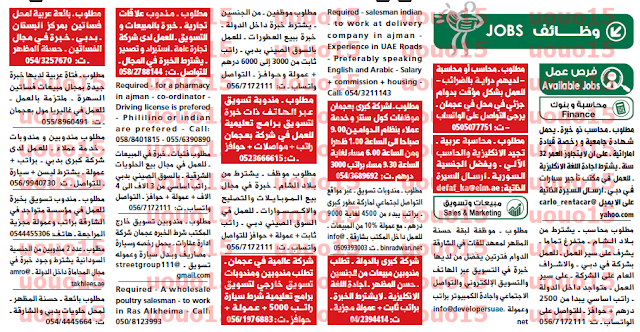 من وظائف جريدة الخليج الاماراتية اليوم 11/5/2018.