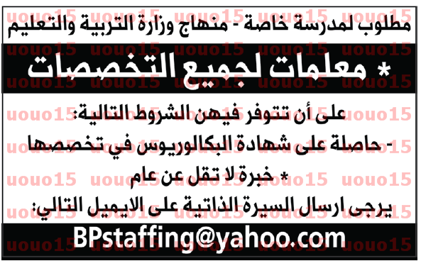 معلمين ومعلمات لجميع المواد.