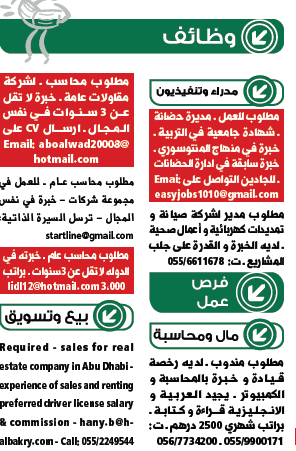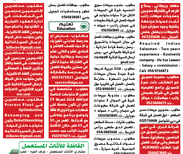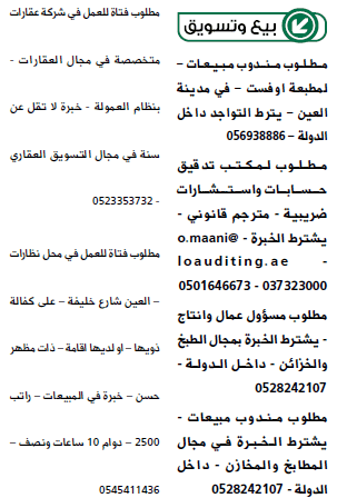 مطلوب شاب مصري بكالوريوس تجارة للعمل في الامارات.