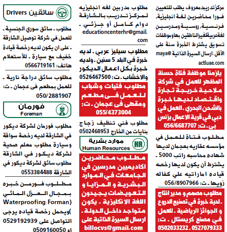 مطلوب سائق للعمل في مطعم بخورفكان.