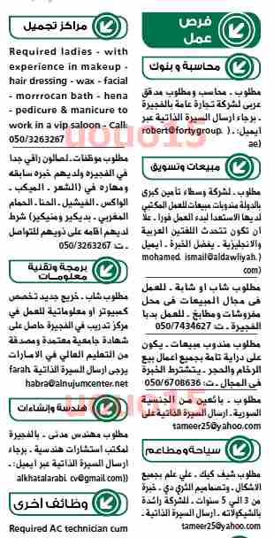 وظائف جريدة دليل الاتحاد الامارات 8 يوليو 2018
