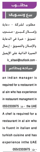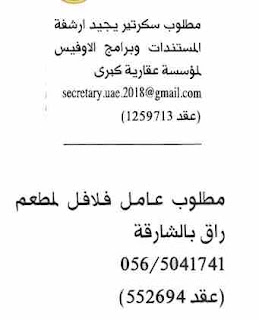 وظائف في شركة دعاية واعلان كبرى في الامارات.