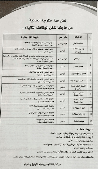 مدونة وظائف الامارات مدونة إعلانية مجانية متخصصة في نشر اعلانات الوظائف ولا تقوم بأي عمل تجاري أو وساطة بين المعلن والباحث عن الوظائف.