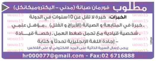خبرة لا تقل عن 5 سنوات في دولة الامارات.