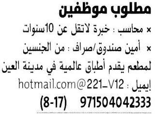 مطلوب محاسب للعمل في العين.