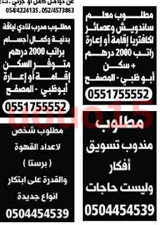 اعلانات وظائف جريدة الوسيط ابوظبي 1/9/2018