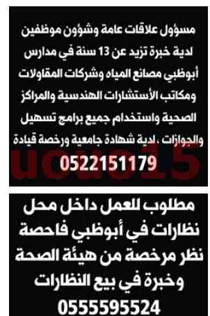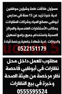 اعلانات وظائف جريدة الوسيط ابوظبي 8/9/2018