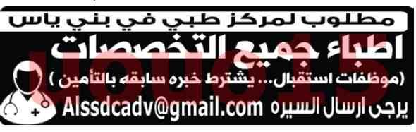 مطلوب أطباء جميع التخصصات لمركز طبي في بني ياس.