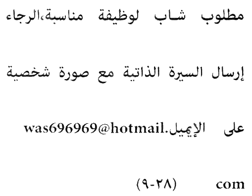 مطلوب شاب لوظيفة مناسبة.
