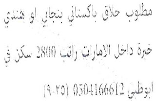 مطلوب حلاق باكستاني او هندي للعمل في ابوظبي.