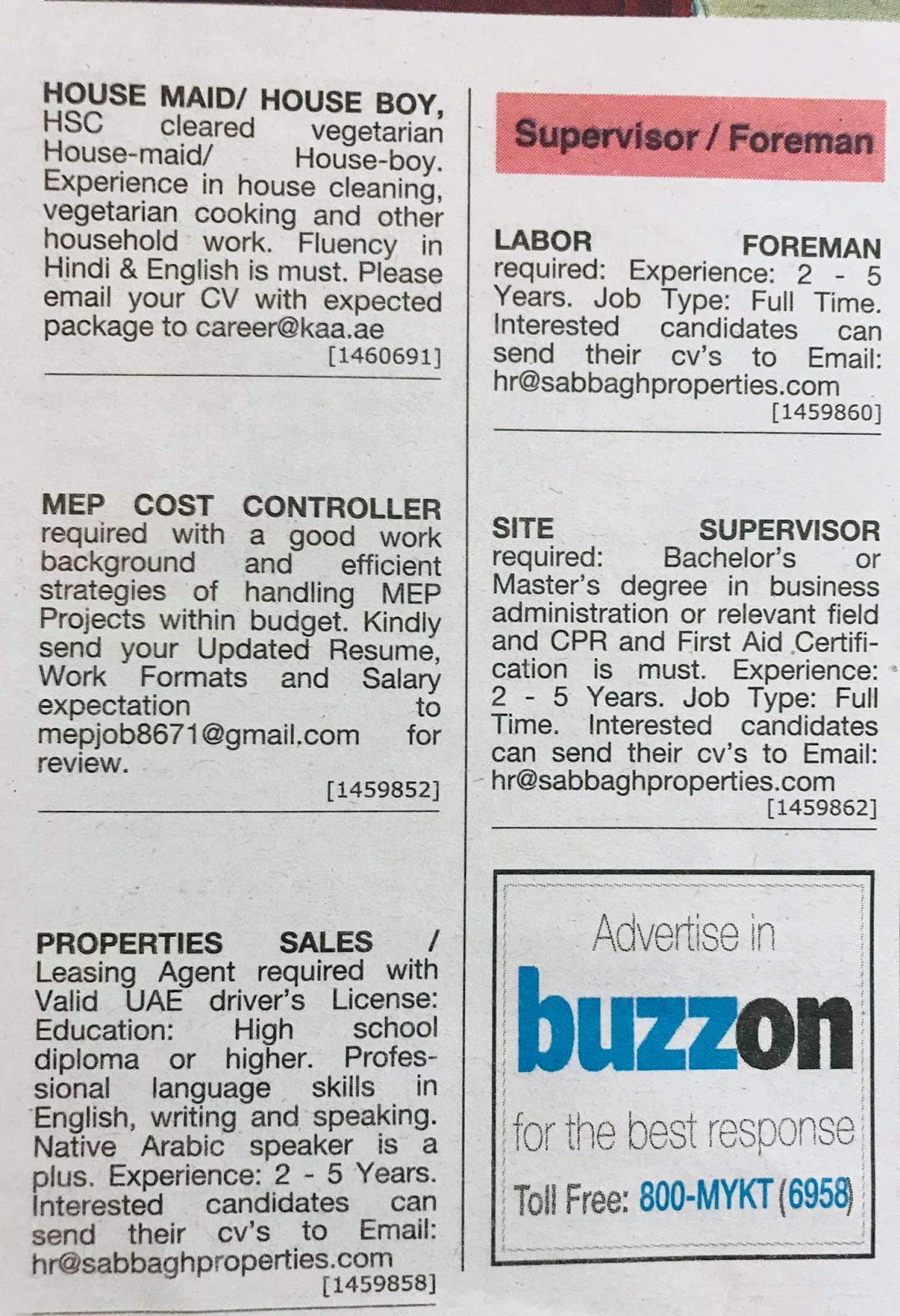 مطلوب مندوب علاقات عامة للعمل في شركة مقاولات في ابوظبي.