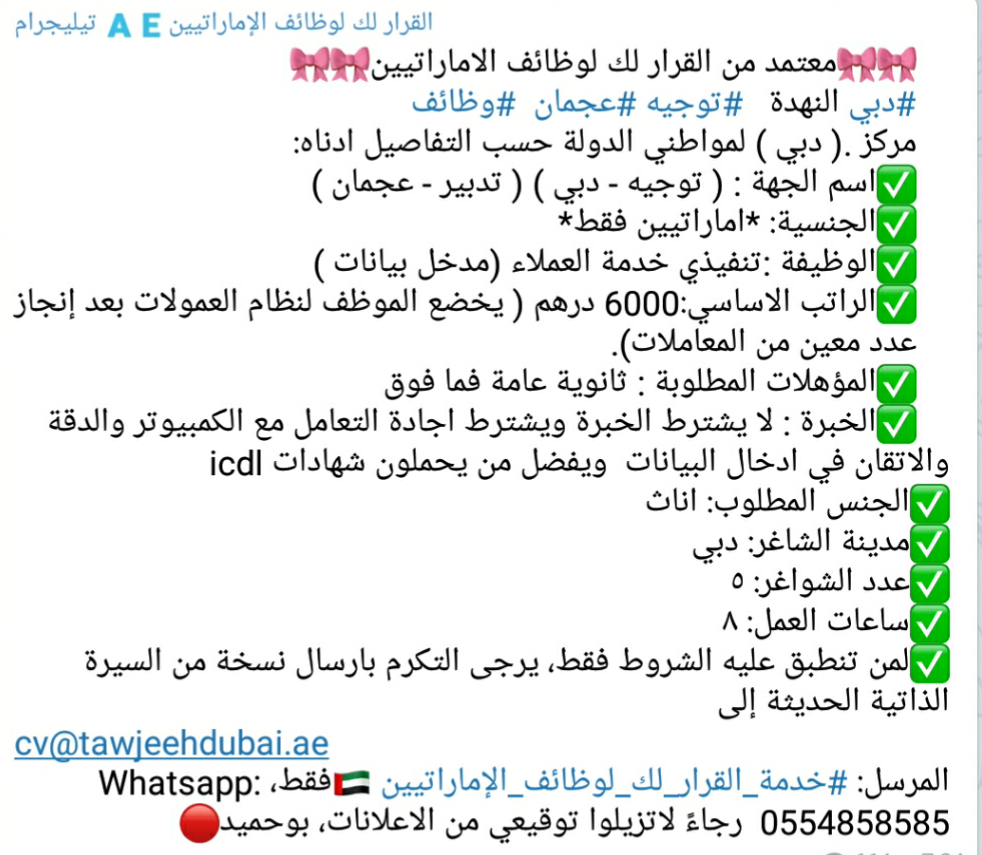 وظائف شاغرة في الامارات بتاريخ اليوم 3/12/2018