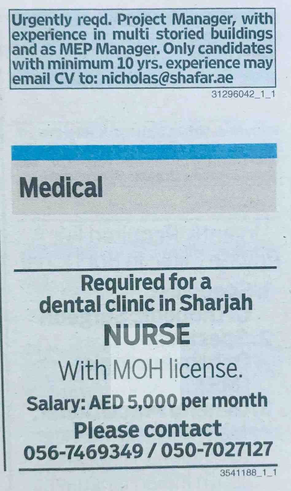 مطلوب طبيب اسنان لمركز طبي مرموق في الشارقة.