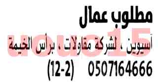 شركة مقاولات في راس الخيمة تعلن عن حاجتها الى: