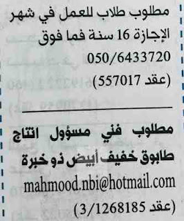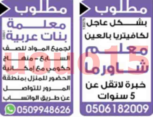 مطلوب فورمان المنيوم يجيد الكمبيوتر للعمل في مدينة العين.