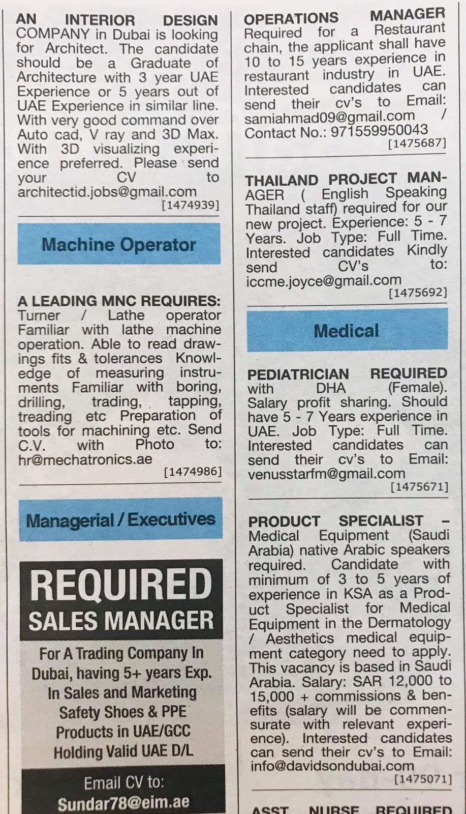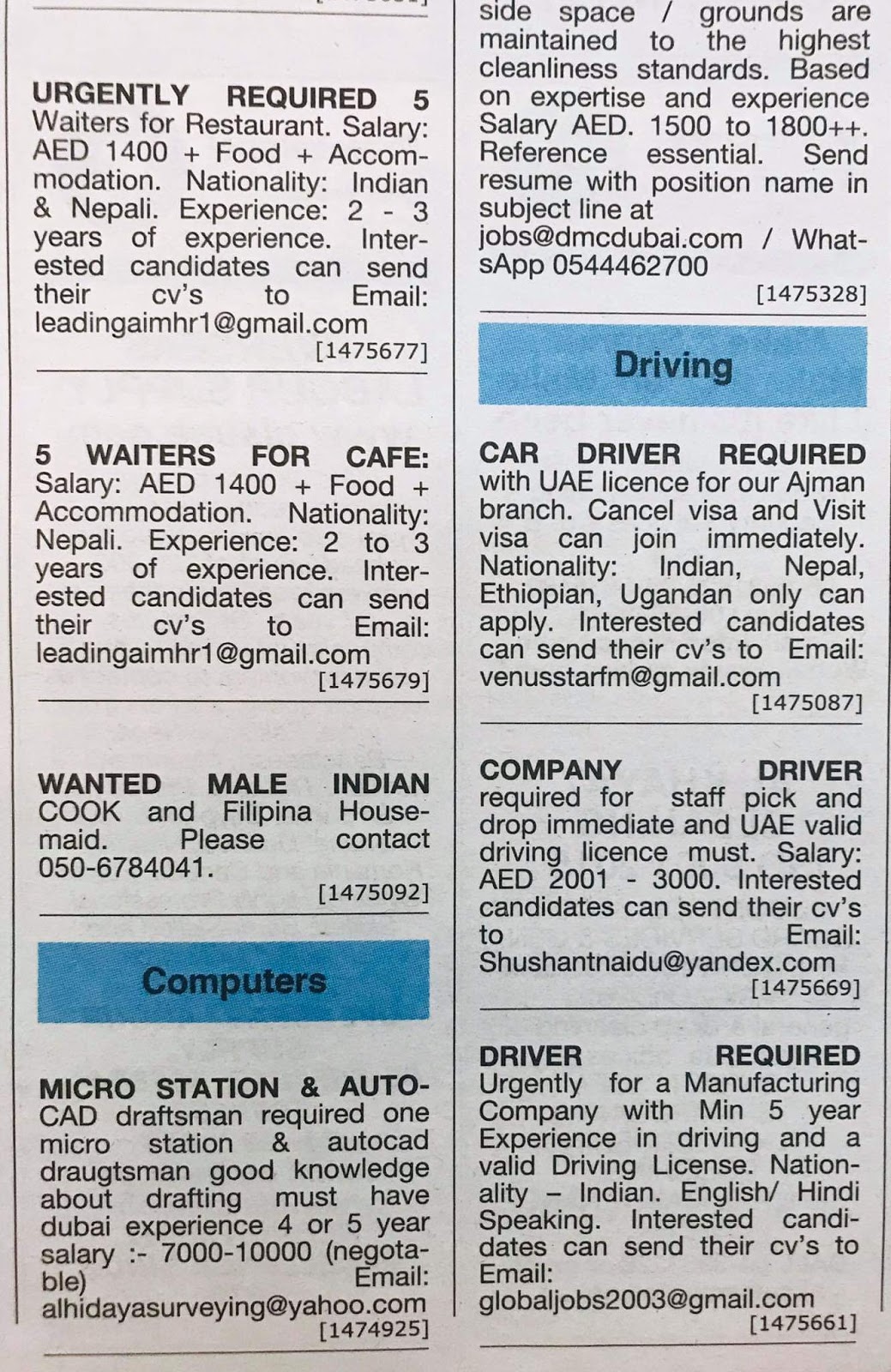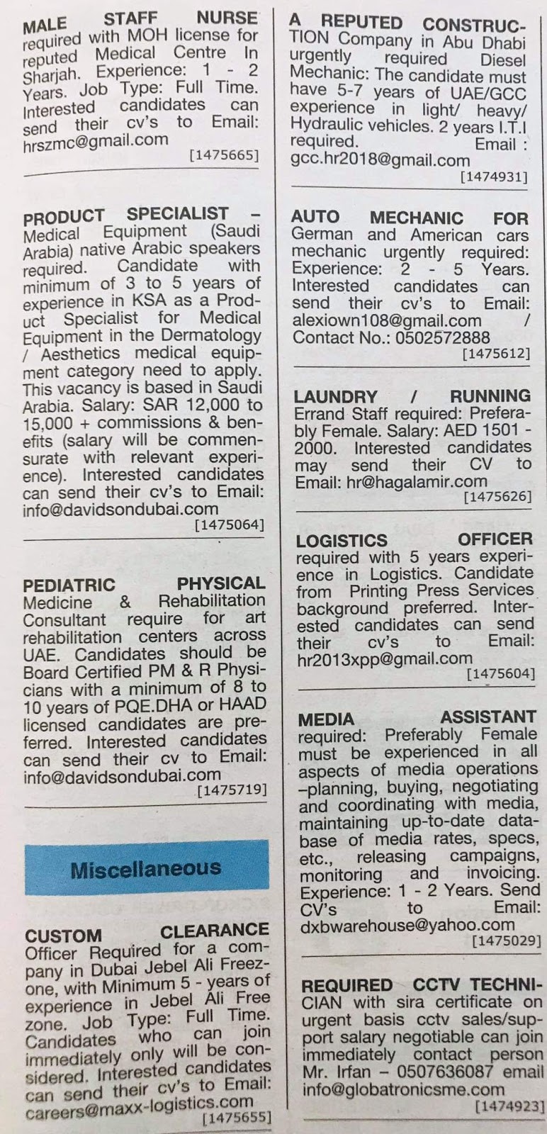 وظائف شاغرة في الامارات بتاريخ اليوم 20 فبراير 2019.