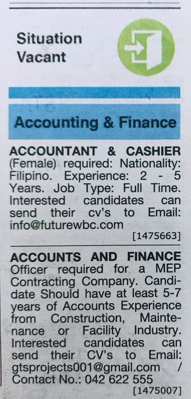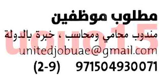 وظائف محاسبين بالامارات بتاريخ اليوم.