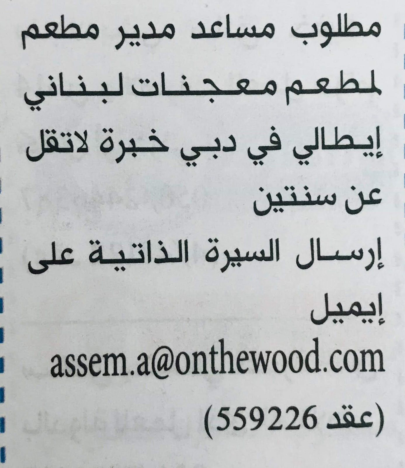 جهه محلية في إمارة الفجيرة تعلن عن حاجتها الى: