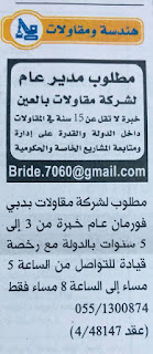 شركة مقاولات هندسية تقع في دبي تبحث عاجلا عن: