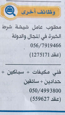 مطلوب فني مكبفات - سباكين - حدادين - سائقين.