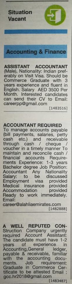 مطلوب مساعد محاسب براتب 3500 درهم.