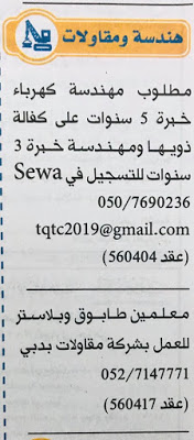 وظائف شاغرة من جريدة الخليج الاماراتية اليوم 12 مايو 2019.