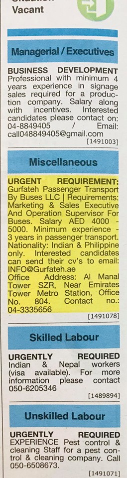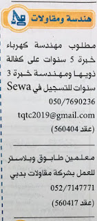 وظائف شاغرة من جريدة الجلف نيوز الاماراتية اليوم ١١ مايو ٢٠١٩.