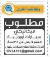 مطلوب مهندس ميكانيكا خبرة لا تقل عن سنتين بالامارات.