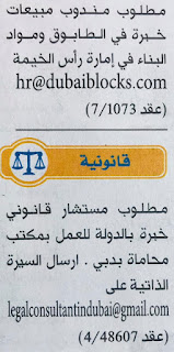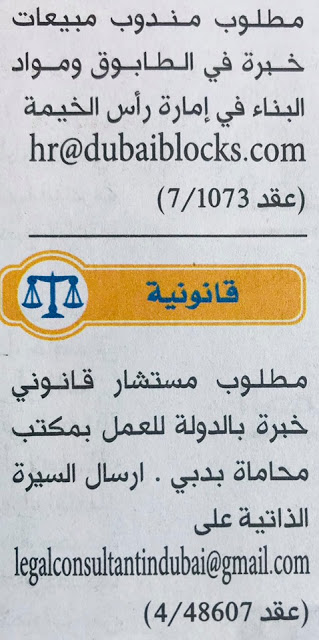 وظائف الامارات بتاريخ اليوم.