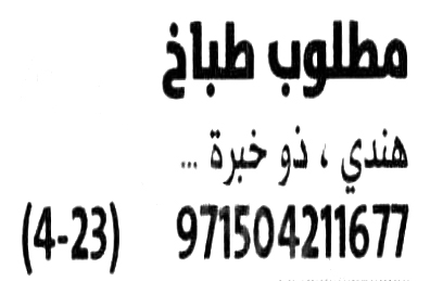 مطلوب طباخ هندي للعمل في الامارات.