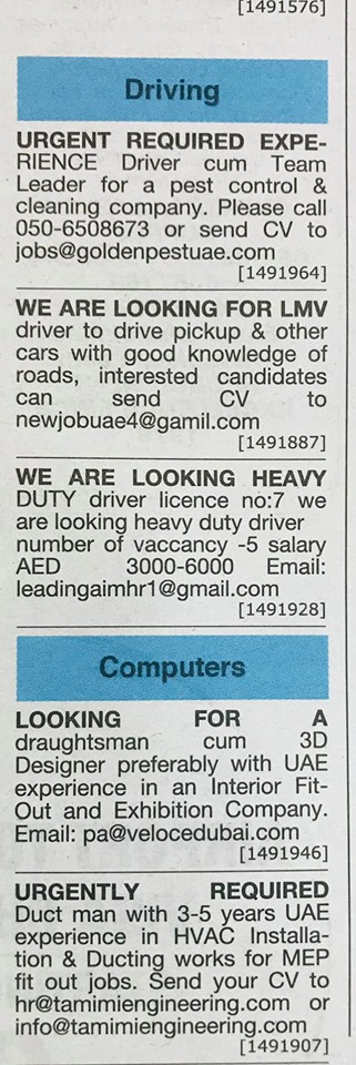 وظائف اليوم في الامارات 15/5/2019
