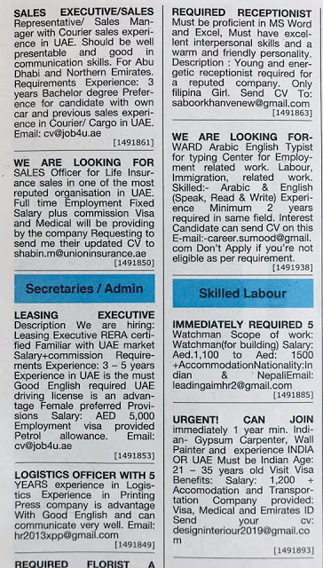 وظائف شاغرة في الامارات بتاريخ اليوم 15 مايو 2019.