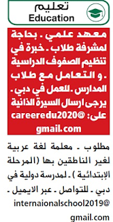 اعلانات وظائف بجريدة الخليج الاماراتية يوم 15 أغسطس 2019.