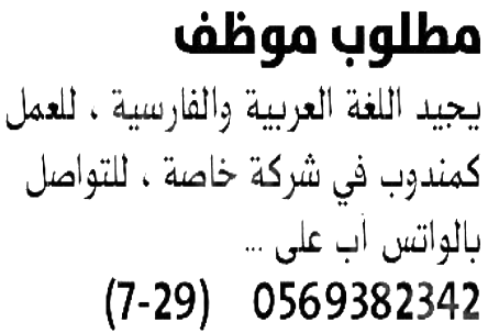 مطلوب سكرتيرة ومندوبين للعمل في دبي.