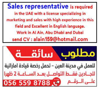 مطلوب بائع مفروشات خبرته في الامارات لديه رخصة قيادة.