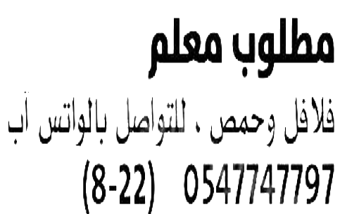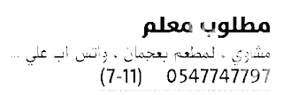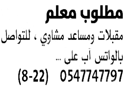 مطلوب مشرف عمال عام مقاولات.