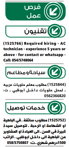 وظائف الخليج الاماراتية ليوم الثلاثاء.