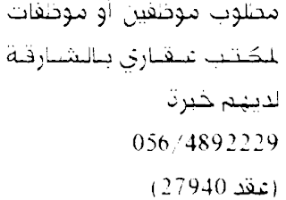 مطلوب موظفين وموظفات لمكتب عقاري في الشارقة.