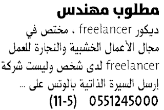 مطلوب جزار خبرة لا تقل عن 4 سنوات.