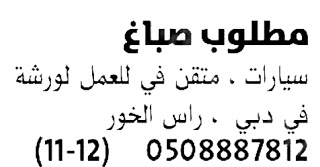 مطلوب صباغ سيارات لورشة في دبي - راس الخور.