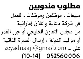 مطلوب مندوبين مبيعات لشركة دعاية واعلان اماراتية.