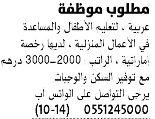 مطلوب مدرسين ومعلمات للعمل في الامارات
