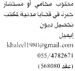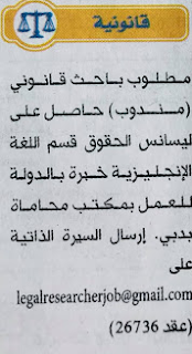 مكتب محاماة في دبي يعلن عن حاجته الى: