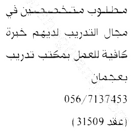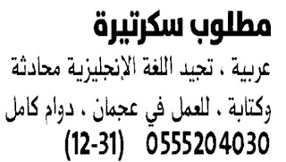 وظائف في مكتب تدريب في عجمان.