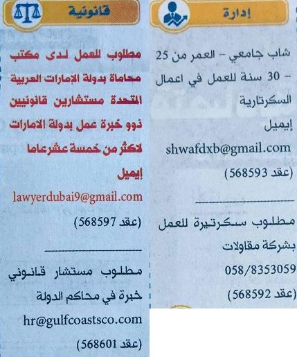 وظائف الخليج الاماراتية ليوم 23 فبراير 2021.