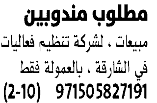 مطلوب مندوبين دعاية واعلام لشركة اعلامية.