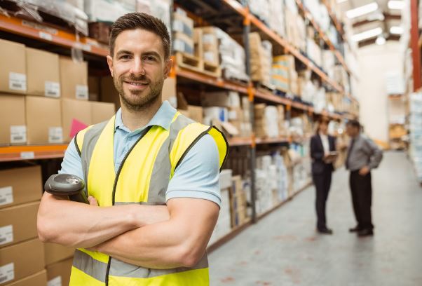 يساعد في تعبئة وتفريغ العناصر المراد تخزينها على الأرفف في المخازن أو المستودعات أو ساحات التخزين.