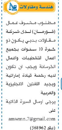 شركة مقاولات اماراتية علن عن حاجتها الى: